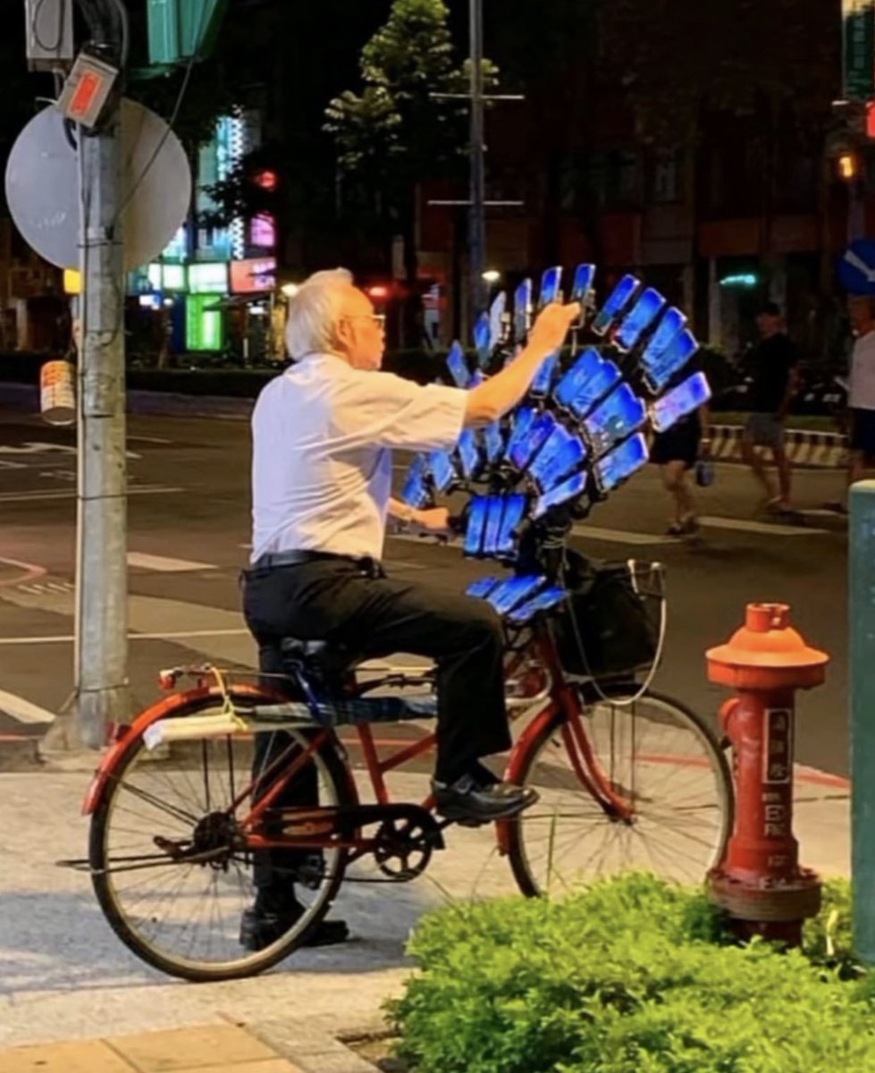 I think hes playing Pokemon go on all those phones, you know for maximum efficiency.