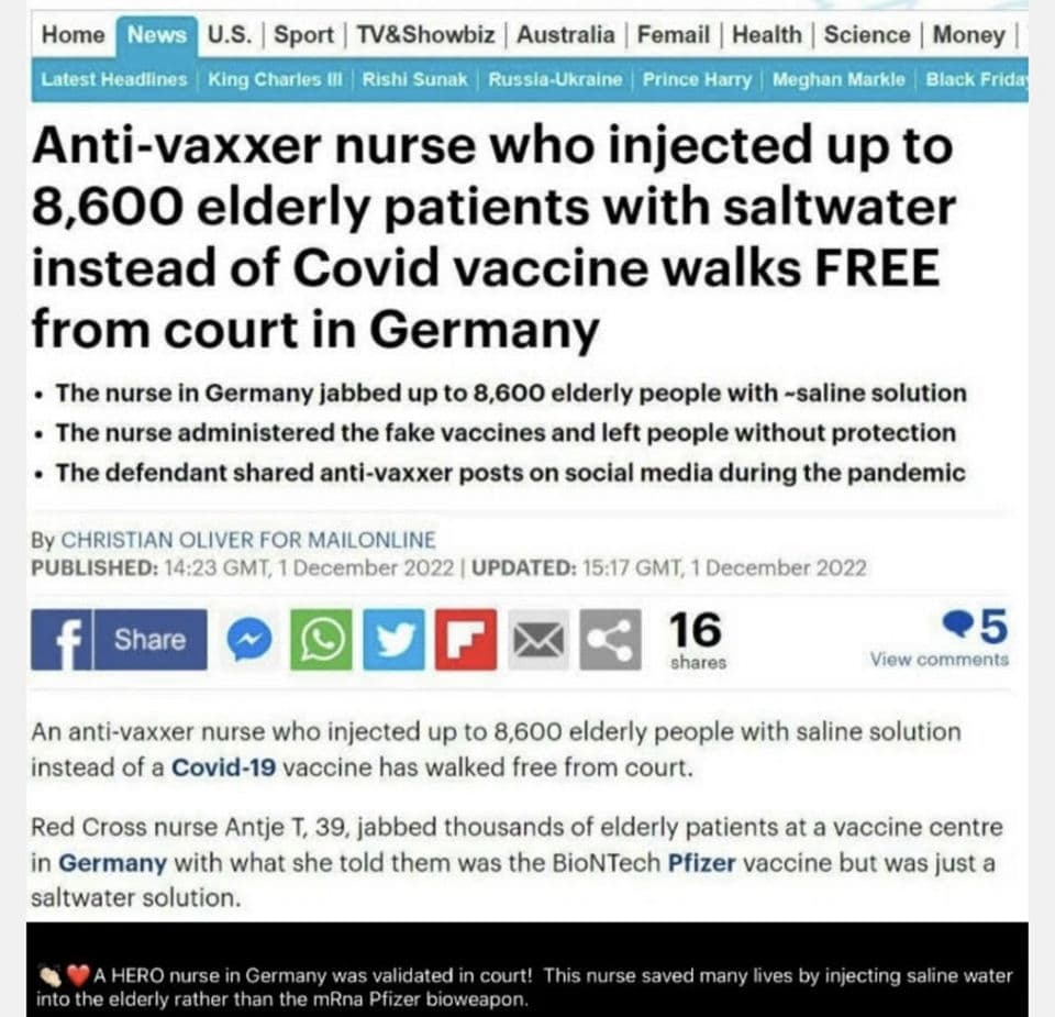 … what a great control group to compare to 8,600 other elderly Germans who received the real thing. Want to bet her group had better medical outcomes? She should receive the Bundesverdienstkreuz der Bundesrepublik Deutschland and relocation to a more free nation all expenses paid.