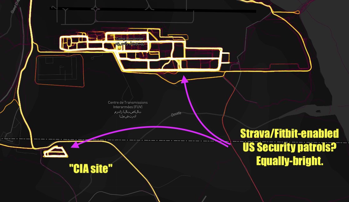 Interesting shot below that I had not seen … STRAVA can not get data from inside the Pentagon but can see CIA Black Sites.