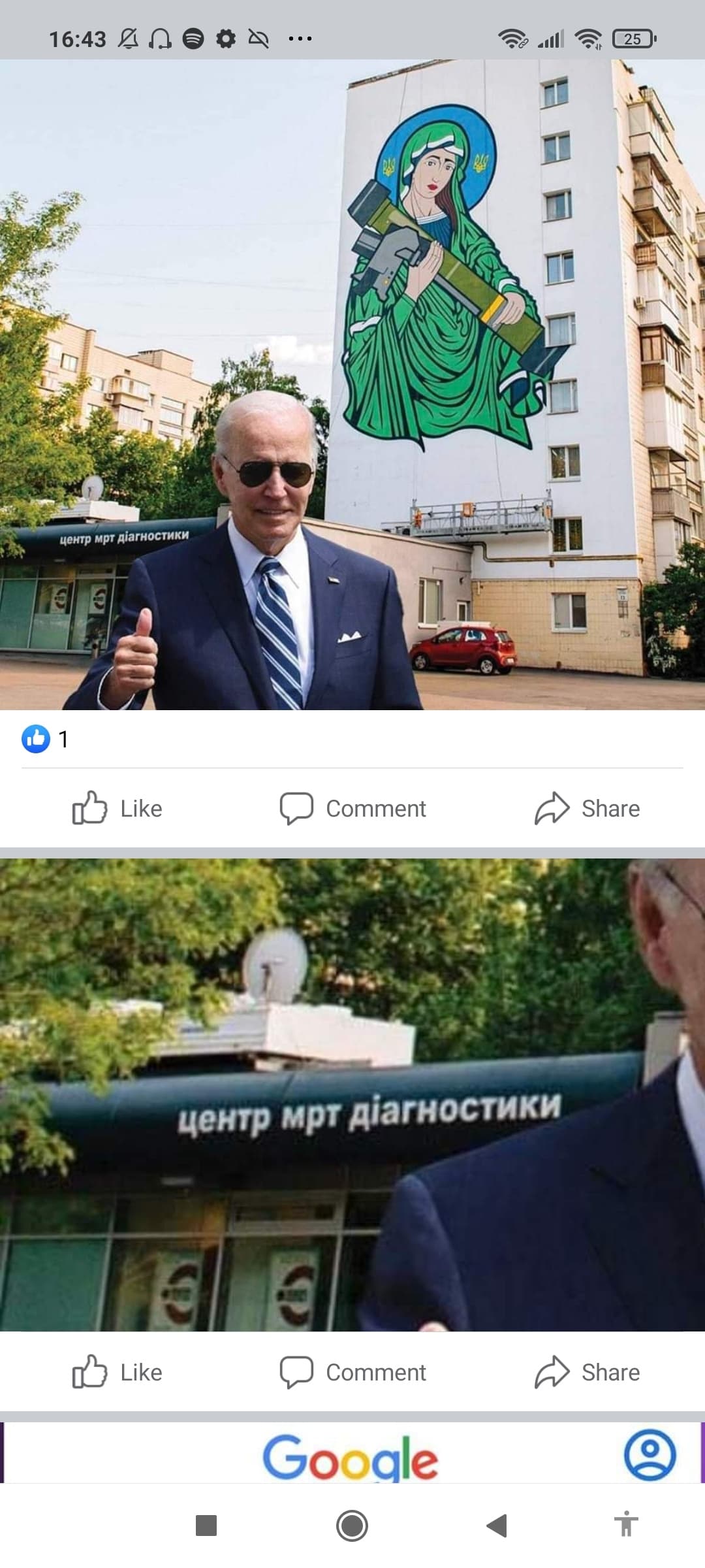 Pictures from Biden in Ukraine, the women on the mural has a Saab Nlaw Rocket launcher on her shoulder.