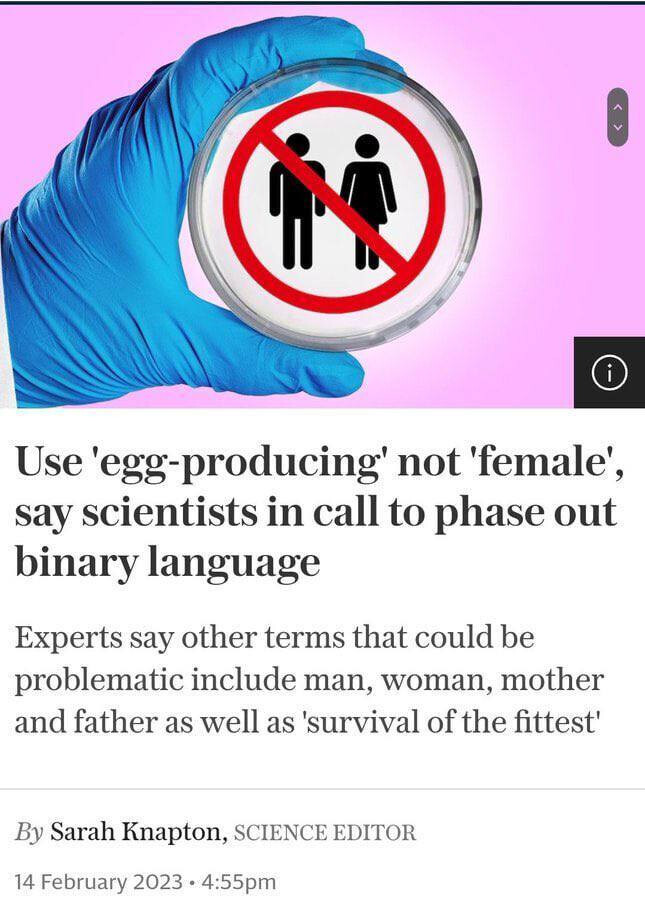 If scientists don’t know – or are willing to be cowed into not admitting – that humans have either XX or XY chromosomes (if that’s not binary, I don’t know what is), then Western civilization is in a state of epistemological collapse. It’s almost as if that’s the goal and someone is pushing this baloney in service of that goal.