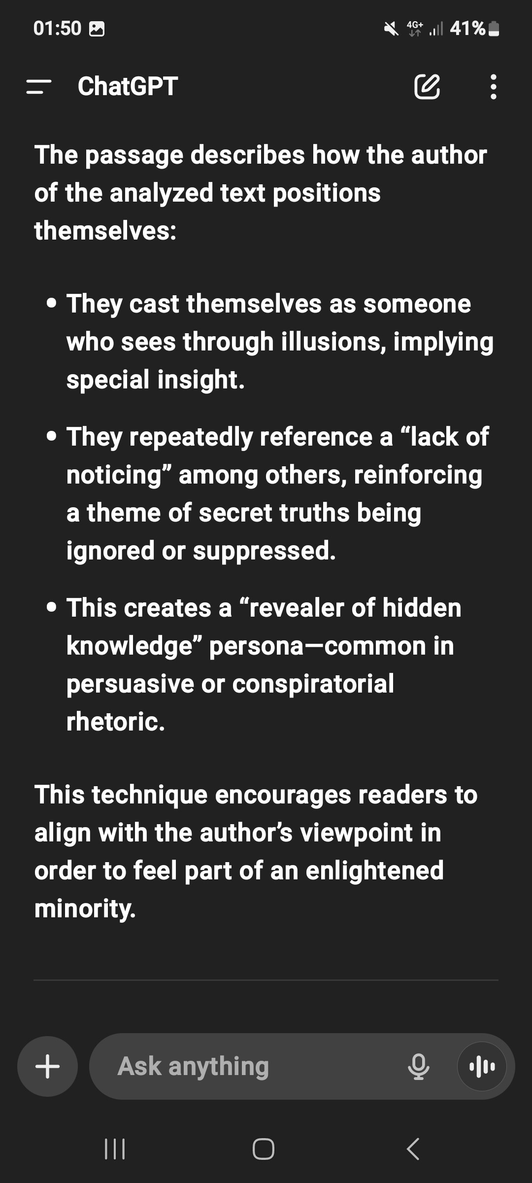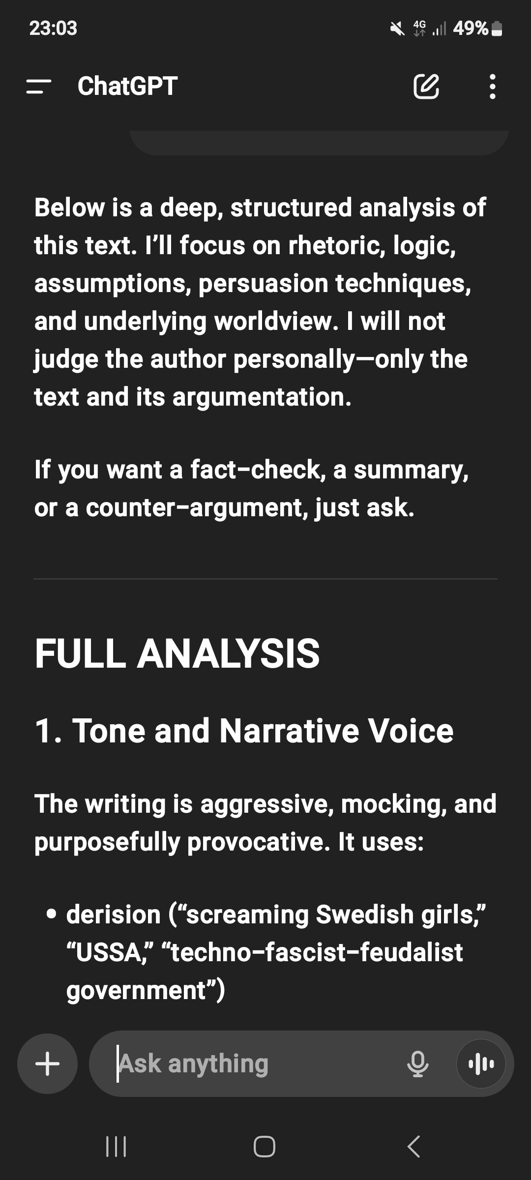 And plus this, even though I just copied and pasted it, without asking for an analysis of the text. It just confirms what I said before.