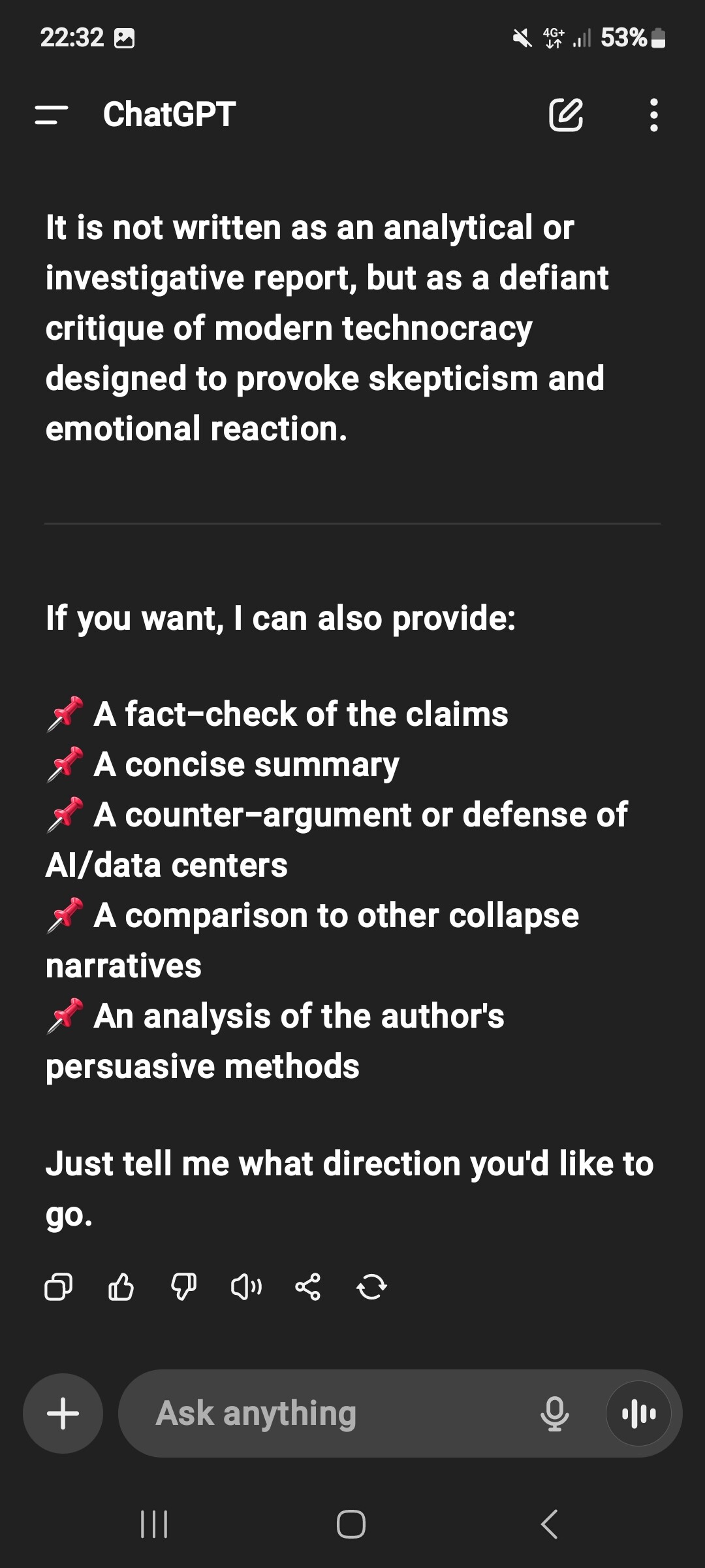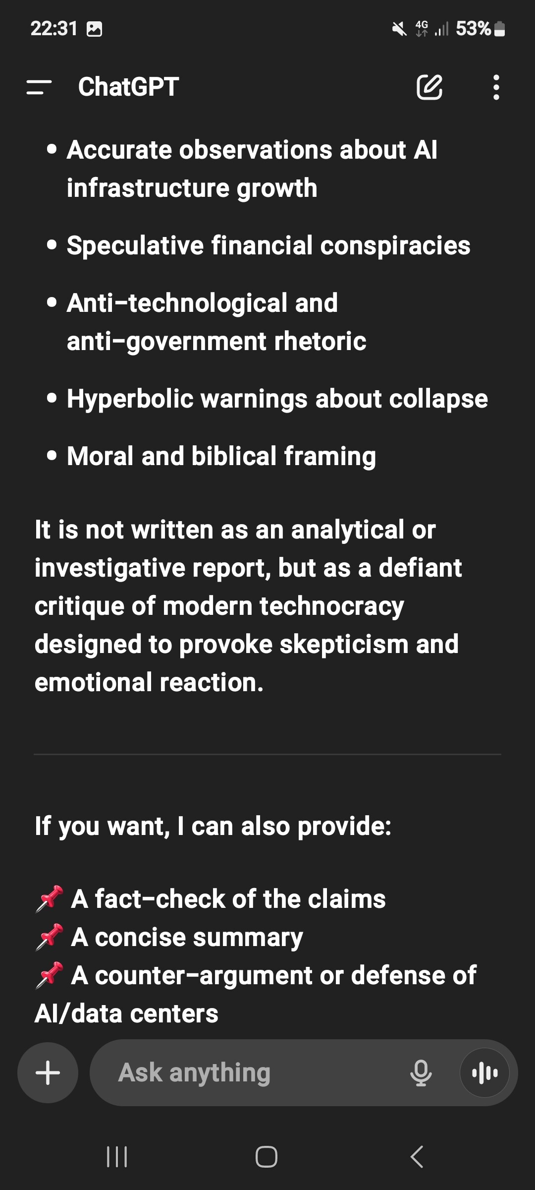 Thanks for a great video, Mohgarr! I will share with the handful of people I know who aren’t techies, but intuitively know the data centers are not good news (they’re building them like crazy here & most “leaders” & sheep think they’re great, still think they’re “gonna provide good jobs!” Or “we have to beat China at this!” By becoming just like them, with surveillance, social credit & all?!