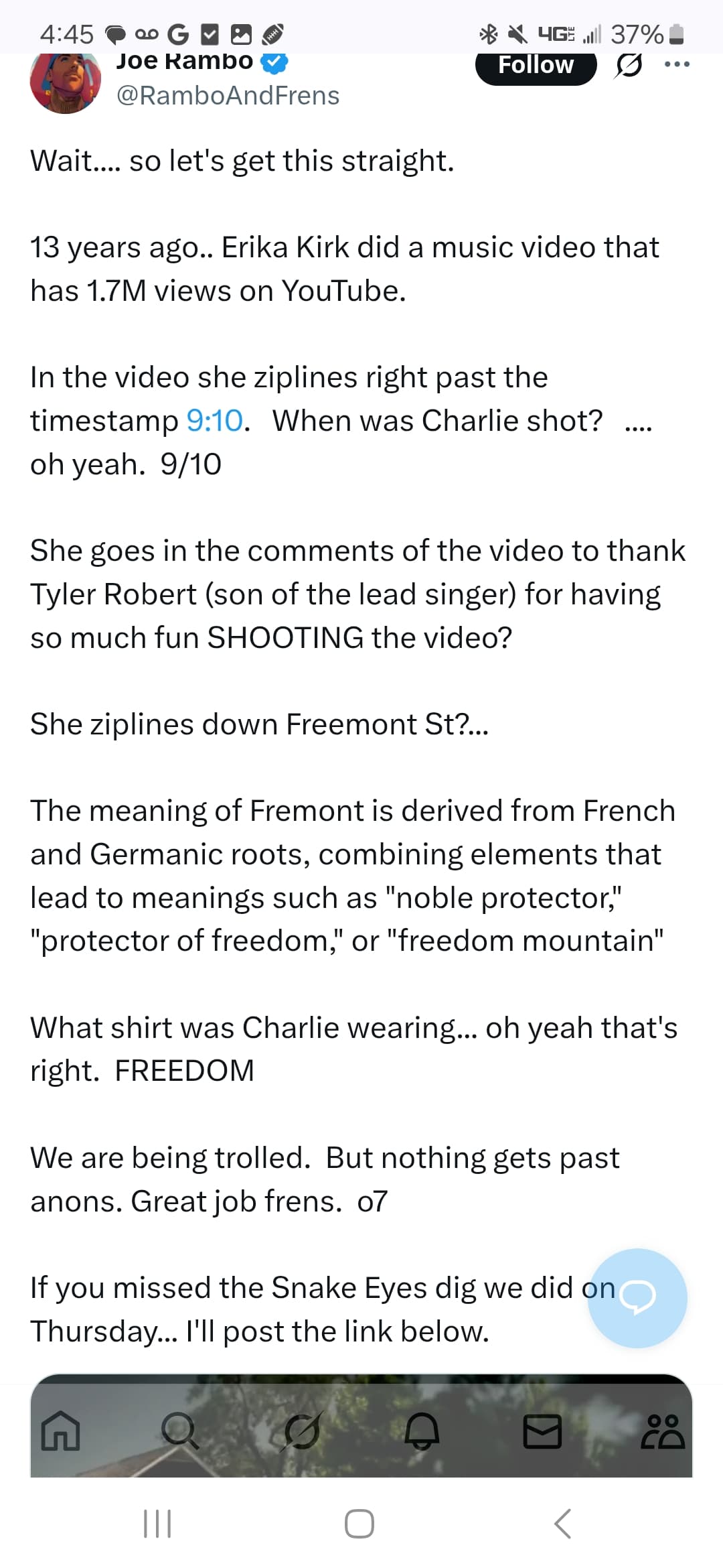 Finally, I am sorry that DarkJournalist wouldn’t listen to my suggestion that Charlie Kirk is in witness protection (he basically said that I was a sad person for thinking that - fine), but those of us in the patriot movement who have understood the reason for Q, studied it, and again, tried to let others “inner stand it”, we say “if you know, you know”.