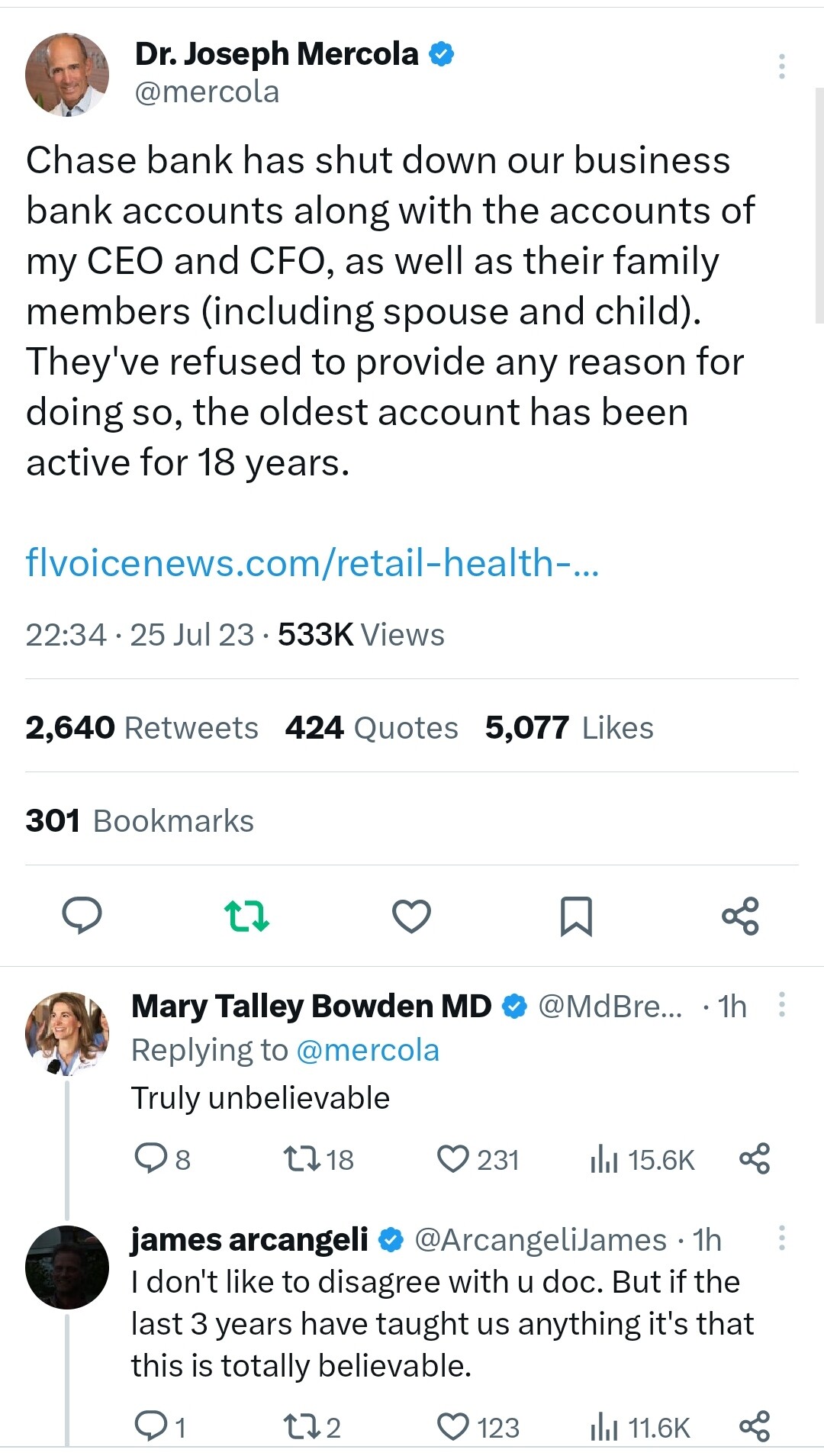 Banking business used to rely on building relationships, not destroying them. Wonder how MBA business schools square that one with graduates. What a mess for Dr Mercola’s business and employees.
