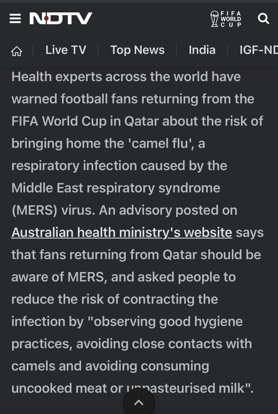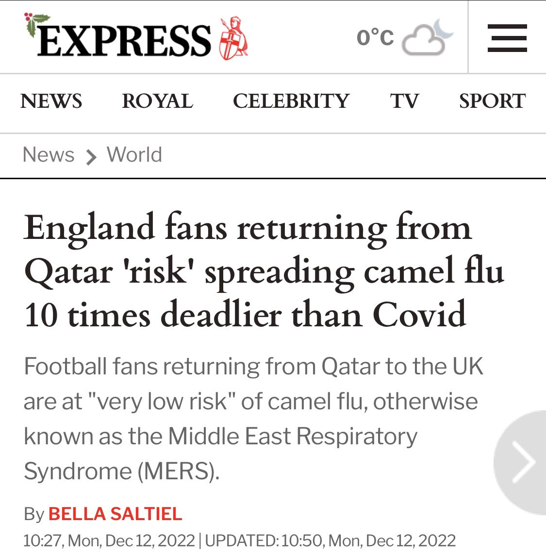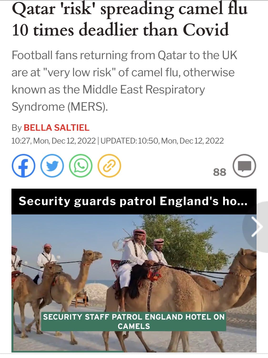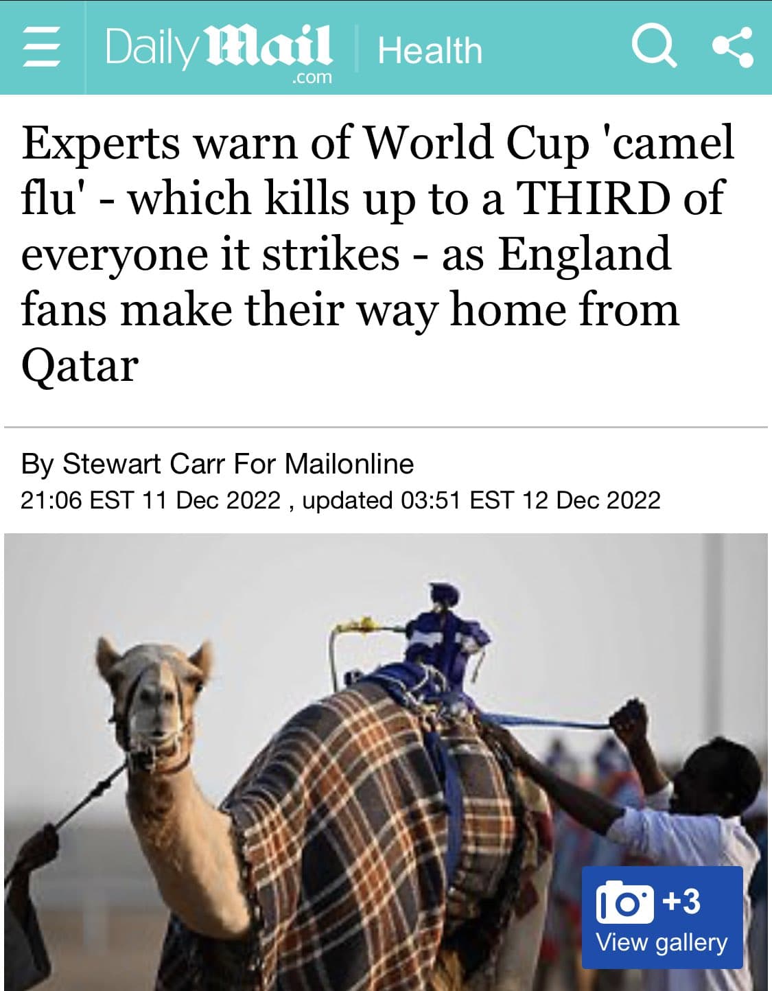 Camel milk, not the Qatar stadium air conditioning system, is your big risk factor according to the mirror.