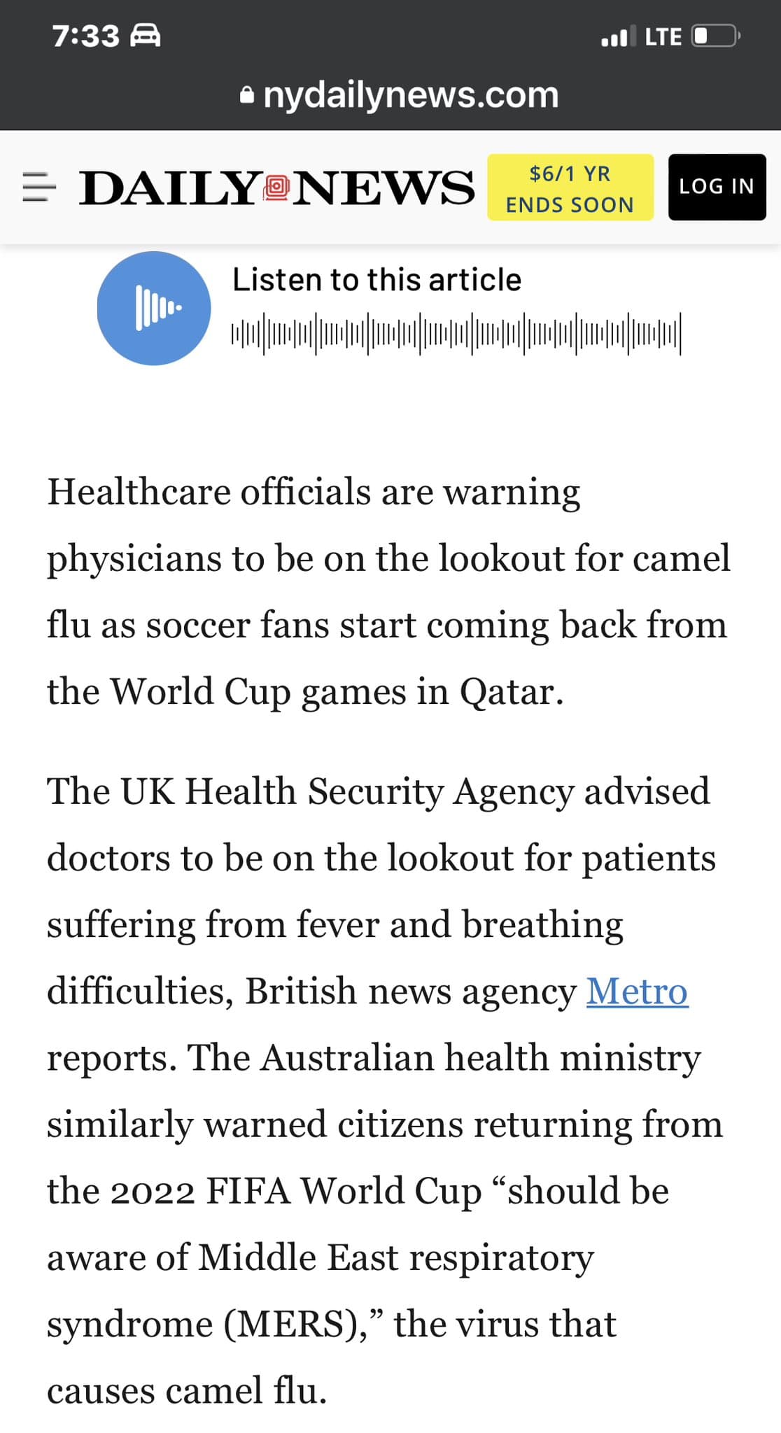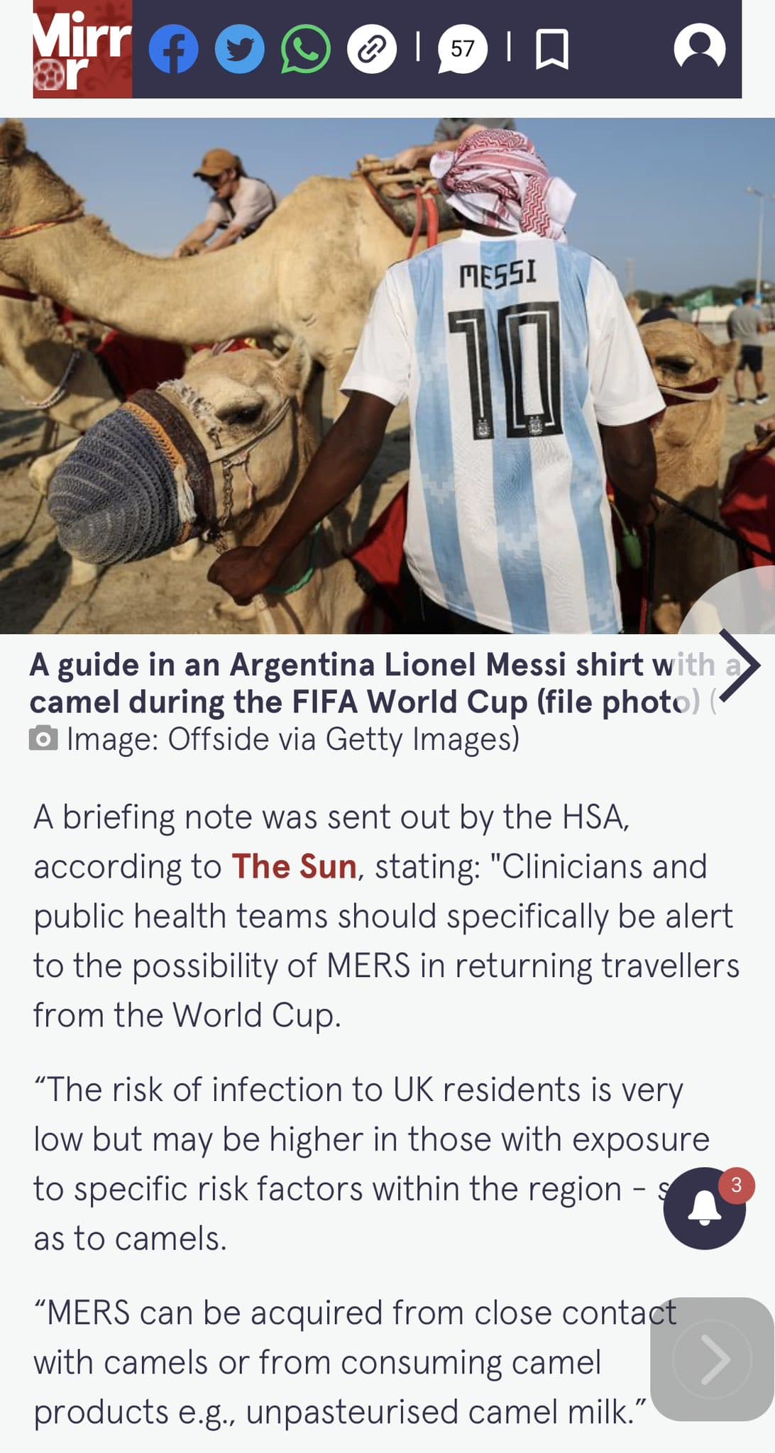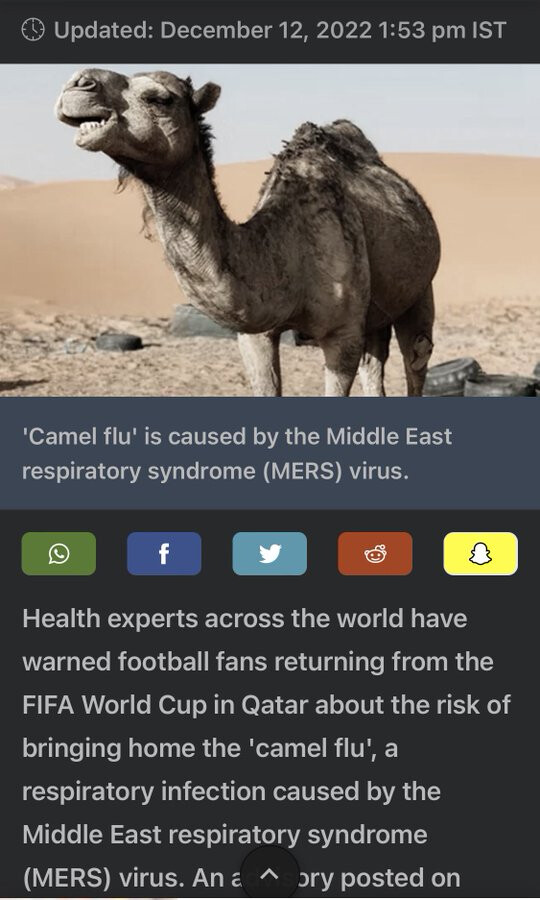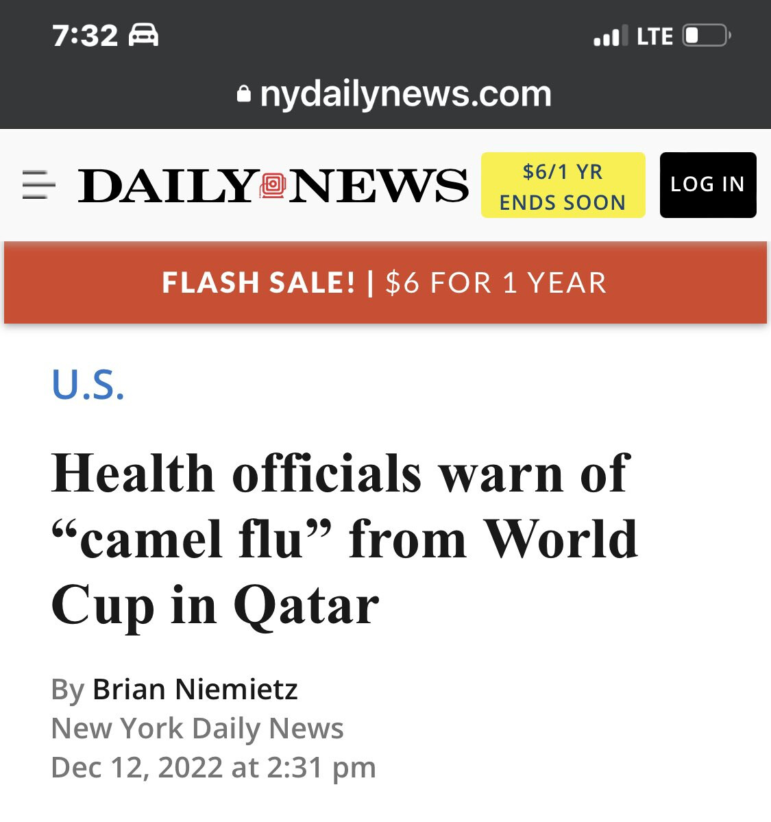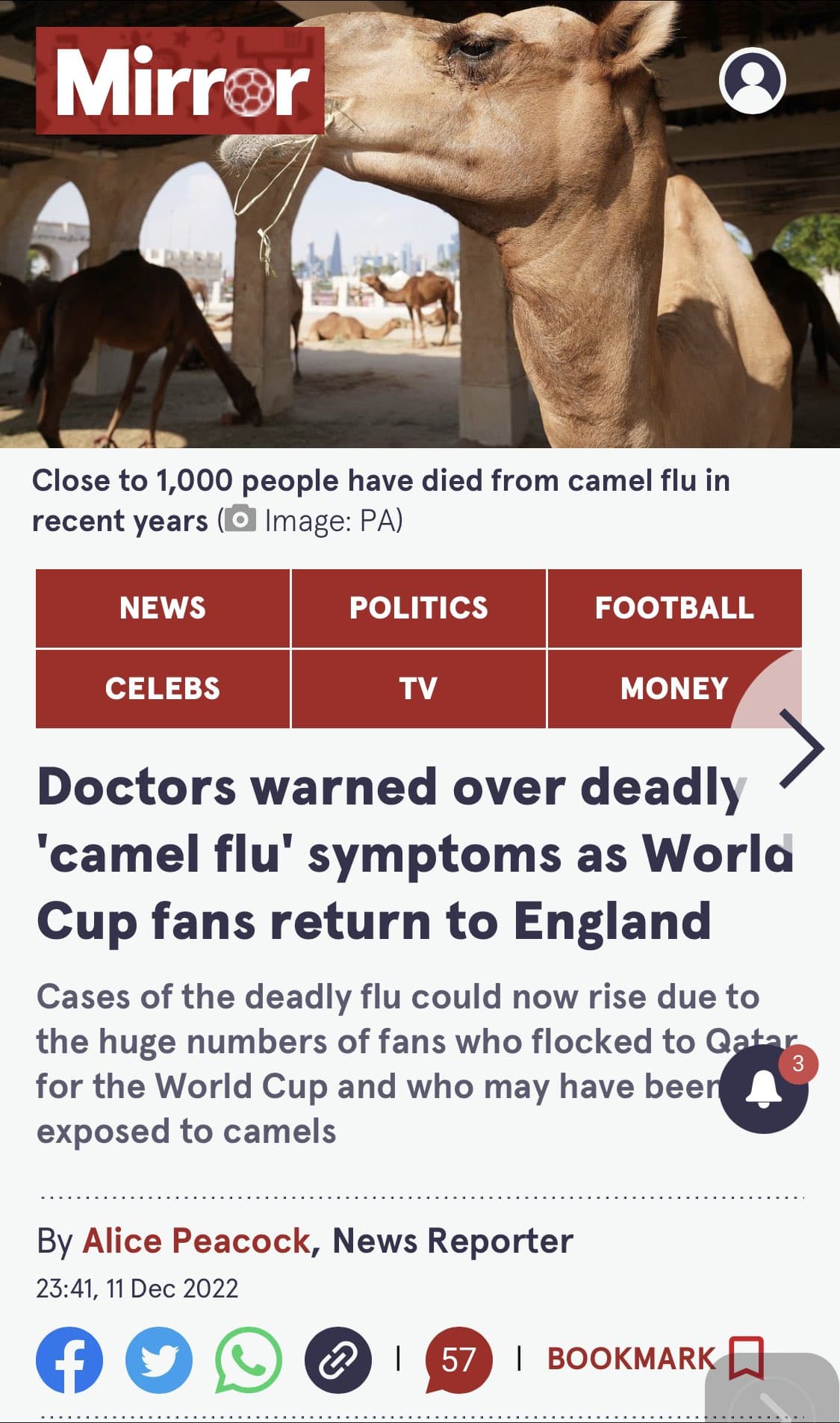 Camel milk, not the Qatar stadium air conditioning system, is your big risk factor according to the mirror.