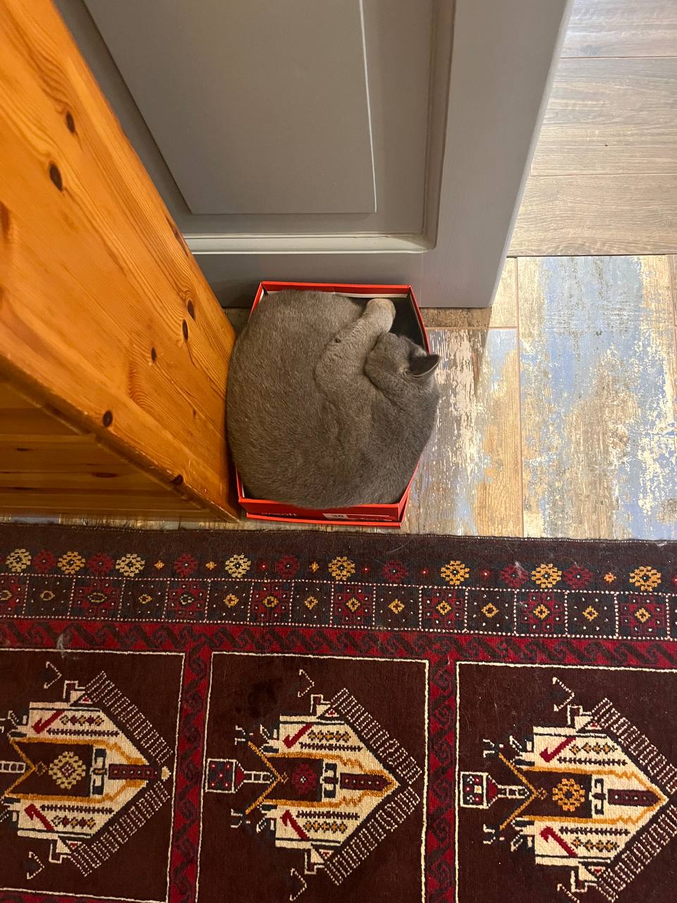 we just love her and making jokes. that big good cat, in that little box. guess she weighs 4-5 times the sandals my daughter bought with the little red box.