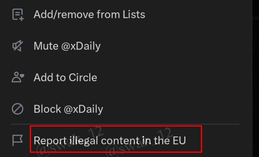 From 25 Aug 2023, Twitter X to add button to report users to EU when new decree against freedom of speech comes into force. EU to outlaw forms of political dissent. Platforms affected: