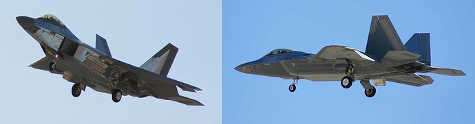 The same mirrored F-22 is seen from different angles. The reflectivity totally changes depending on the viewing aspect.