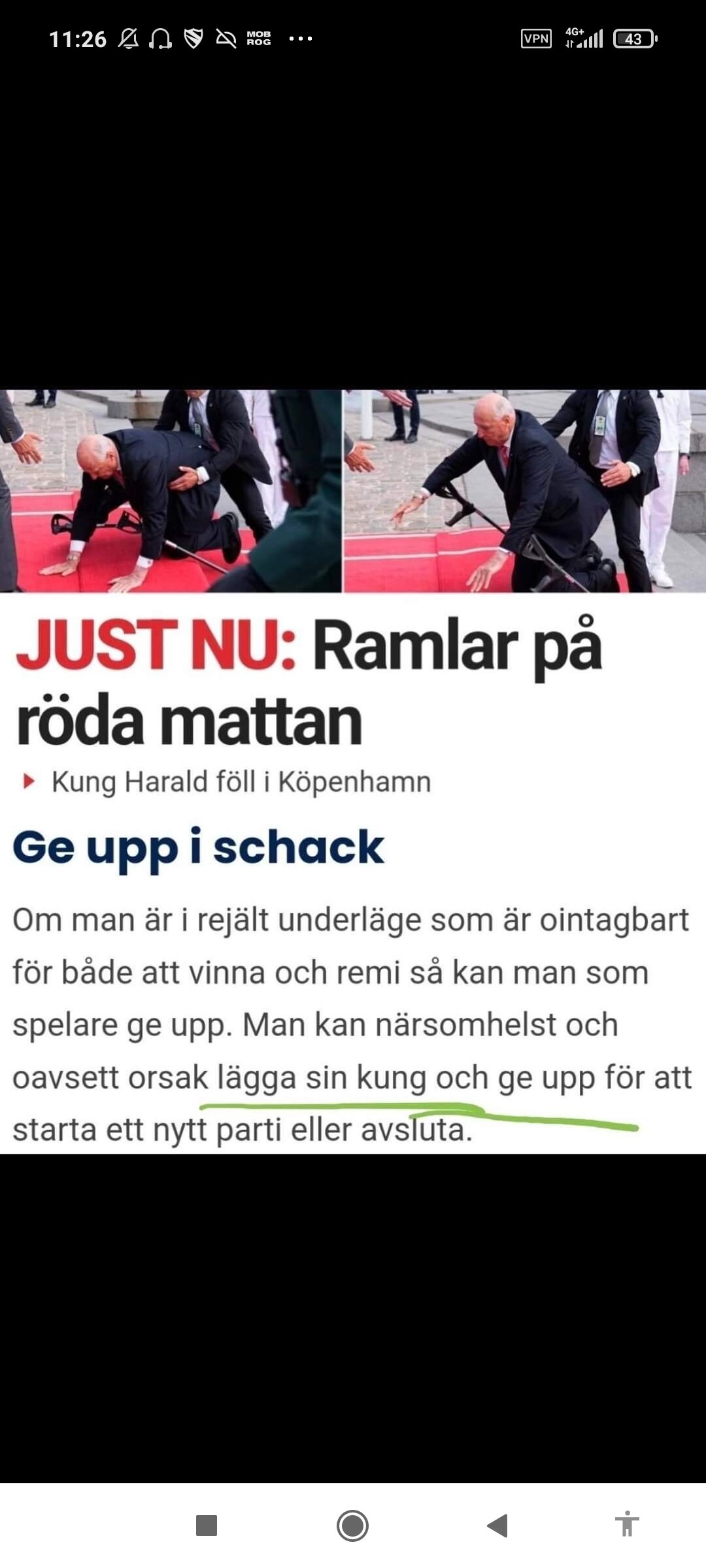 "Current…Falls on the red carpet! King Harald fell in Copenhagen!