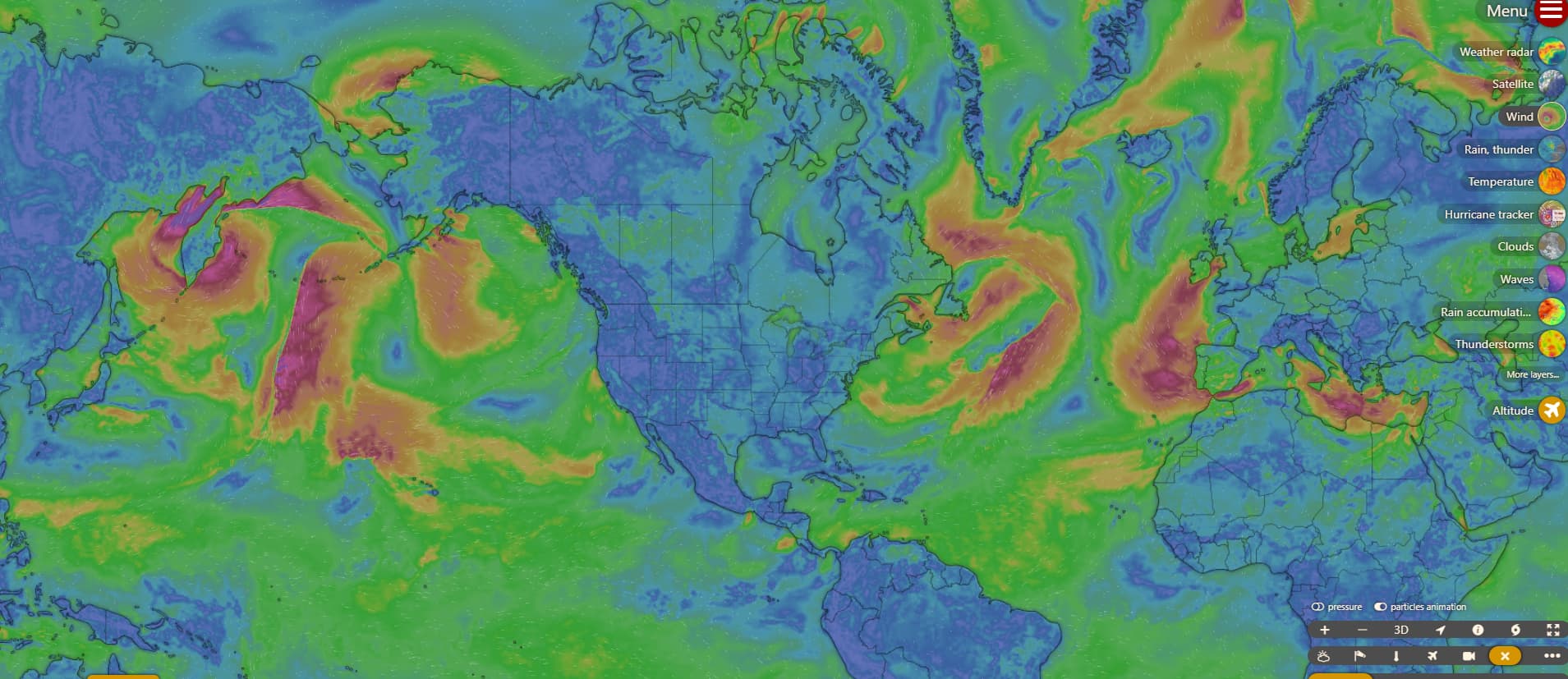 That’s something you don’t see every day. Identical weather system structures in the North Pacific and North Atlantic ( From free sailing/weather app Windy which I use all the time Windy: Wind map & weather forecast)