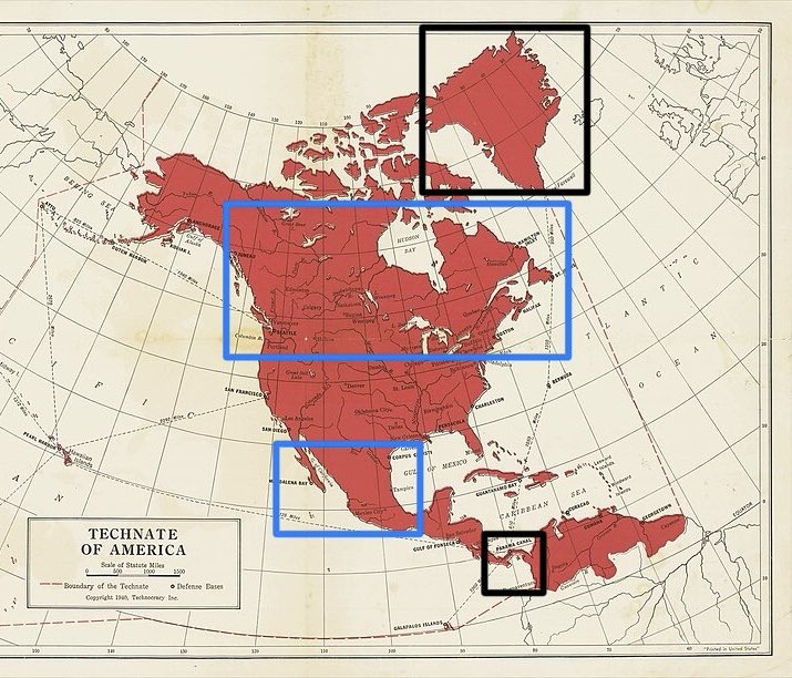 The central idea was that every citizen would receive purchasing rights and power equivalent to the energy production of the system, measured in physical units like joules. In this way, value would be detached from money and linked directly to the technical capacity to generate energy and goods. The project was called the “Technate of America” and was conceived as a continental entity encompassing Canada, Mexico, Central America, and the Caribbean—in essence, the intimate North American space.