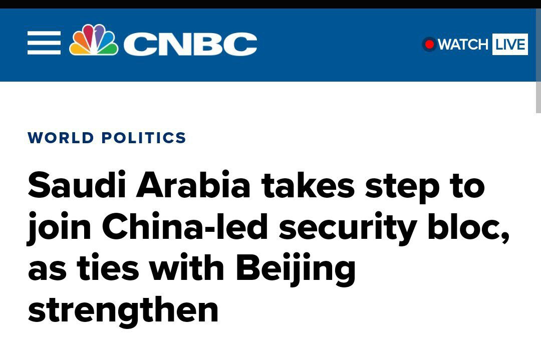 “Saudi Arabia’s cabinet approved a decision to join a China-led security bloc, strengthening Riyadh’s eastern ties in a further step away from U.S. interests”