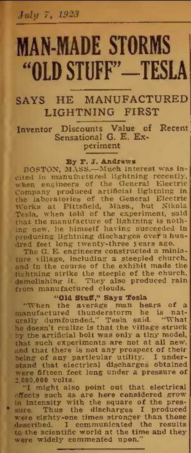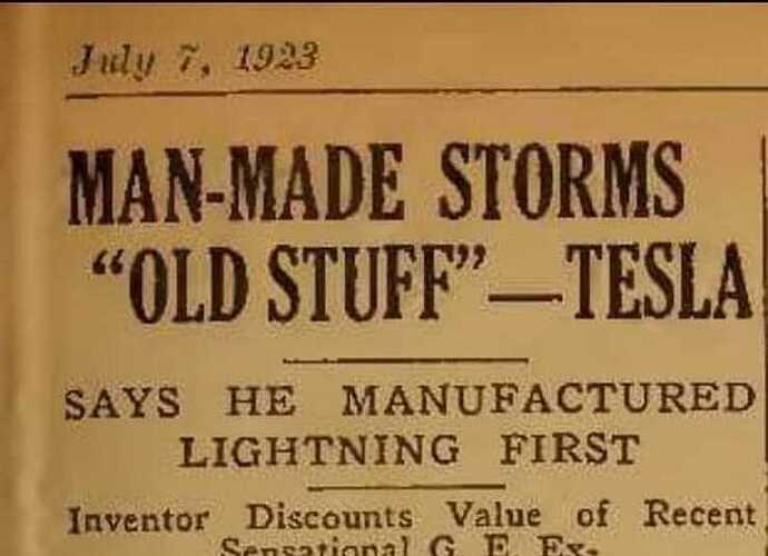 Man-Made Storms "Old Stuff" - Says Nikola Tesla