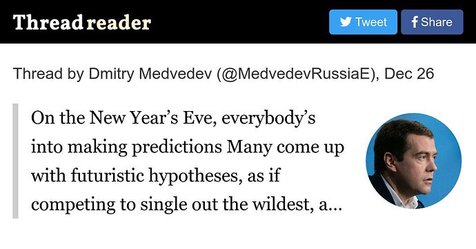 Medvedev’s tongue-in-cheek (?) predictions for 2023 include US civil war resulting in Texas merging with Mexico, Elon wins presidency over some states and the Fourth Reich emerges in Europe and the euro collapses.