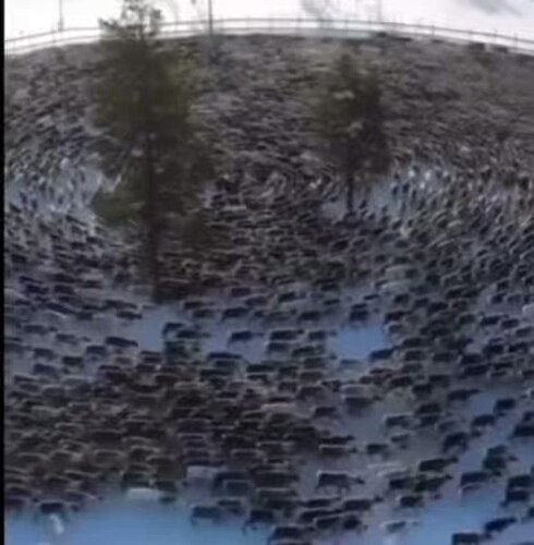 Mongolian farmer discovers hundreds of his sheep have been walking in a circle continuously for 12 Days.