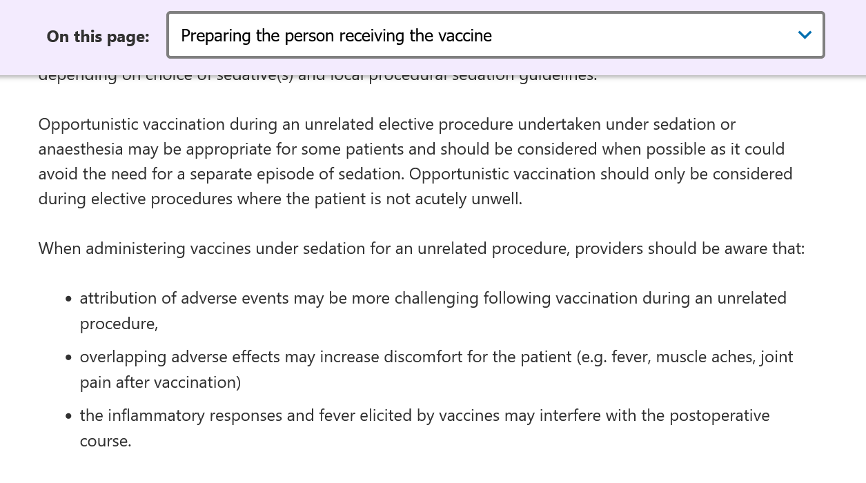 ‘Informed consent must be obtained prior to each dose from the patient themselves, or, where the patient does not have capacity to give consent, from the parent, guardian or substitute decision-maker. Sedation must never be used as a measure to enforce compliance with vaccination requirements.’