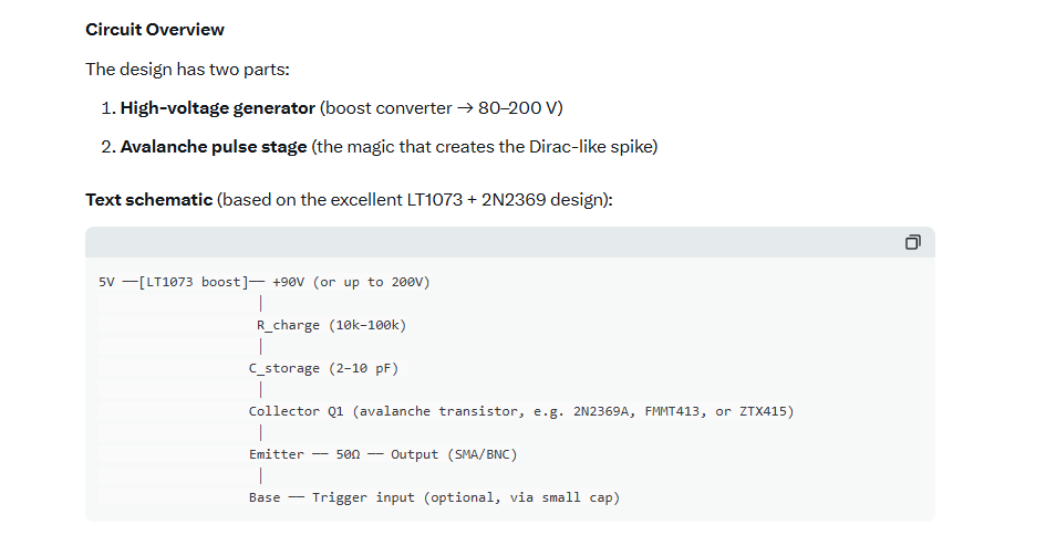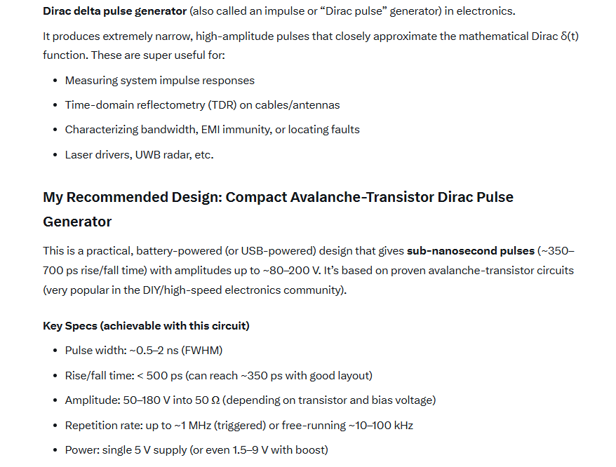 Declaration I don’t know anything about any type of Dirac Generator, but GROK seems to have no scruples about restrictive information. Apologies in advance for image posting of content, I can’t abide the AI slop that comes with cutting and pasting the details. But also having said all of that GROK could be just a lying little toad here too!