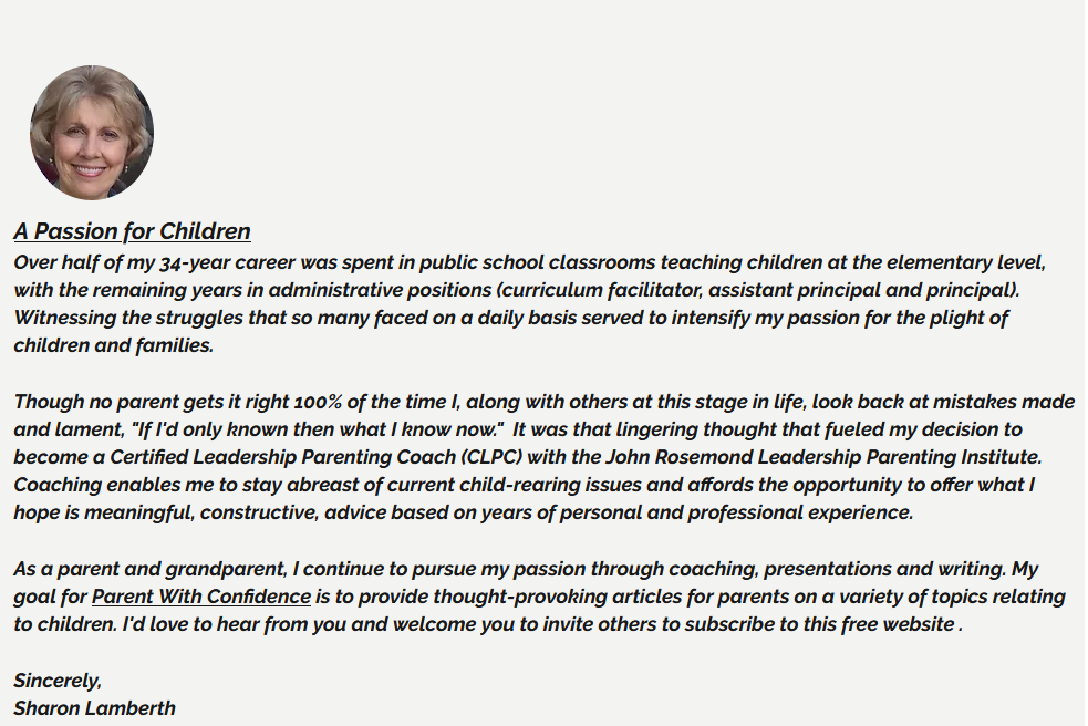 I just wanted to share my mom’s website with any parents who might be interested or struggling. My mom is a retired principal who writes for several local magazines about raising children. I don’t have kids, but I can attest that she is the best mom, grandmother and educator I have ever met… That is my completely unbiased opinion
