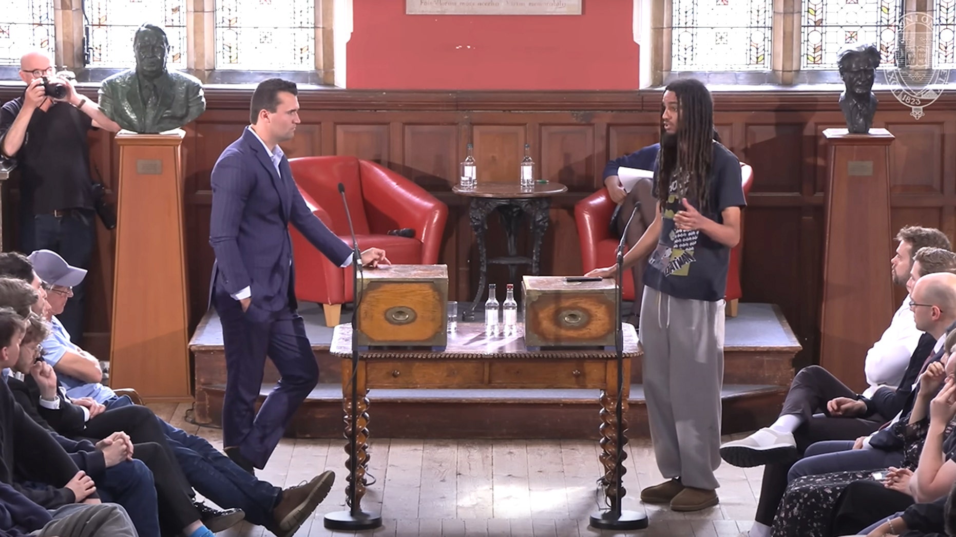 If only Oxford would hire someone to enforce a dress code for their debates. I can’t shake the feeling that the way this individual presented himself in the debate with Mr. Kirk was itself a deliberate insult.
