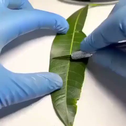 Real-time oxygen production on a leaf. It continues on for quite a while after being removed from the tree.