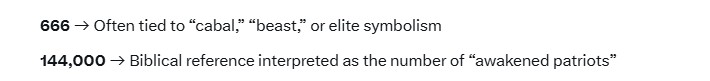 I didn’t follow the Q phenomena that closely, but I have gone deep into biblical/torah gematria. That’s the origin of the gematria rage and since then tons of ciphers came into being but has no application to the hidden meaning in scriptures. It’s a pretty big rabbit hole. The biblical writers gematria has nothing to do with modern day numerology. Like you’re a number 8 and you’ll be a successful entrepreneur or whatever. That type of stuff. They hid deep math into these passages.