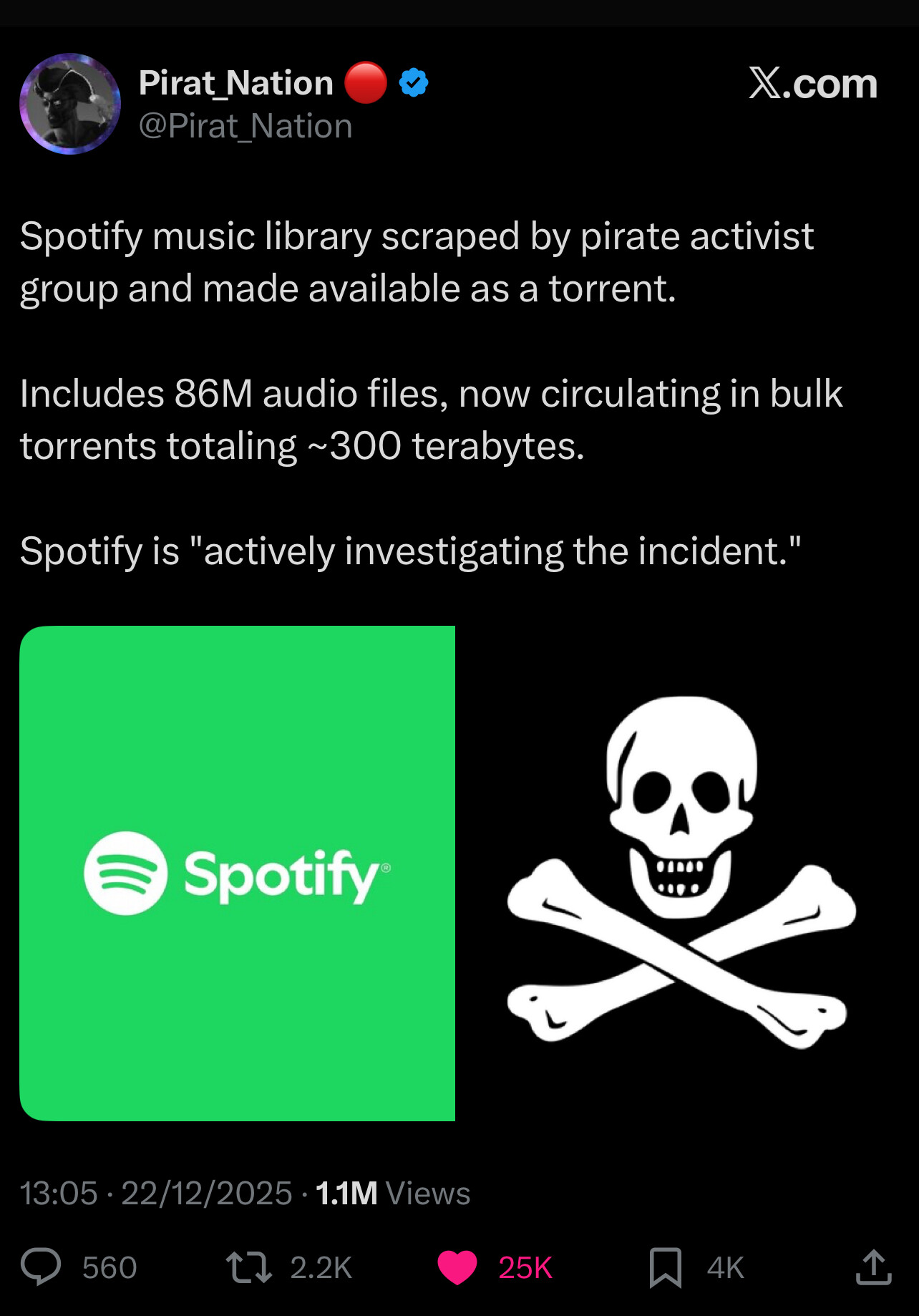 … All of our corporate data is safe and and our theft prevention is effective. I have a new slogan for Spotify. Instead of “Why Pay More?” … “Why Pay Anything?”