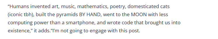 My greatest fear is the humans who upvote this crap.