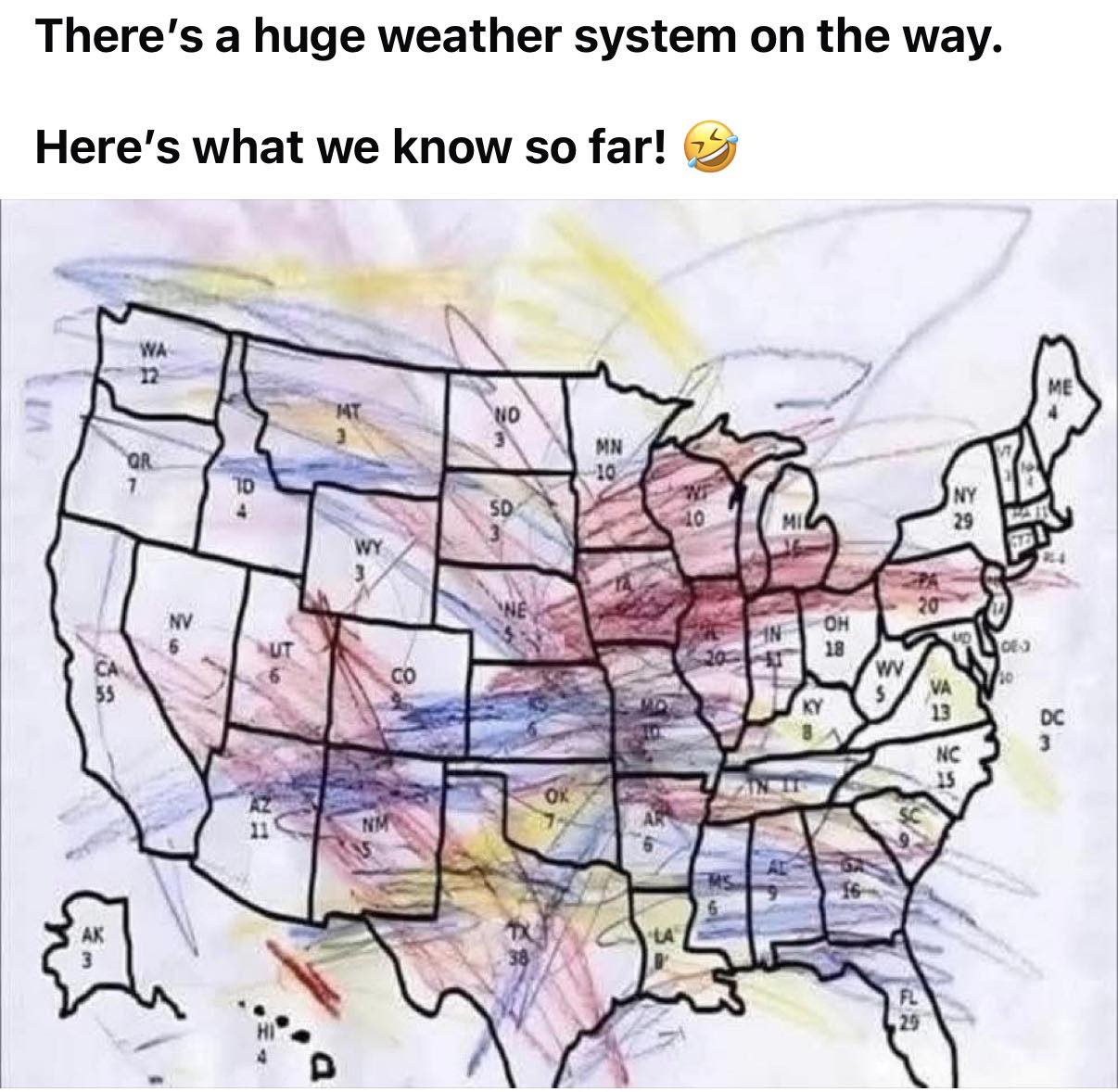 Love the crayoned in weather map btw. Priceless!