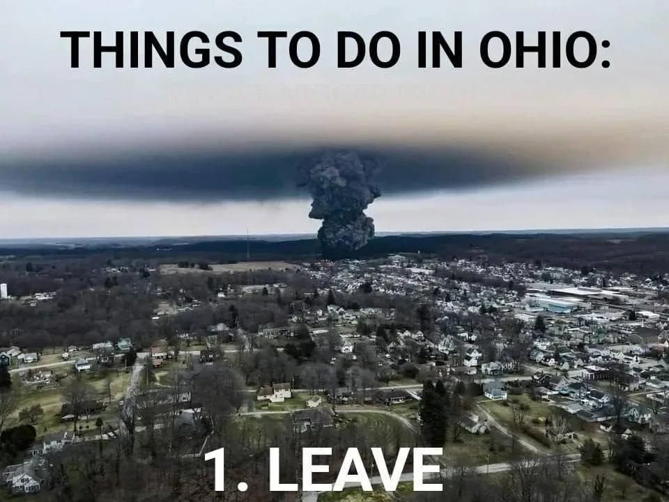 Authorities decided to burn 1,000,000 pounds of vinyl chloride releasing hundreds of thousands of pounds of hydrochloric acid into the atmosphere – why isn’t anyone talking about it? Why have heads of the DOT, EPA, and FEMA remained silent about the massive train derailment in Ohio? At least one reporter was arrested and jailed for attempting to cover the event. What is going on ? “Get The Hell Out Of There” – Ohio’s Apocalyptic Chemical Disaster Rages On. The ongoing crisis in East Palestine represents an environmental and humanitarian disaster that hasn’t been seen in the United States in recent memory. The scenes from East Palestine look as if they’re taken straight out of a horror film depicting nuclear winter . Toxic chemicals from the train derailment & explosion in East Palestine have reportedly “contaminated” the Ohio River as far as West Virginia, a water source for over 5 million.