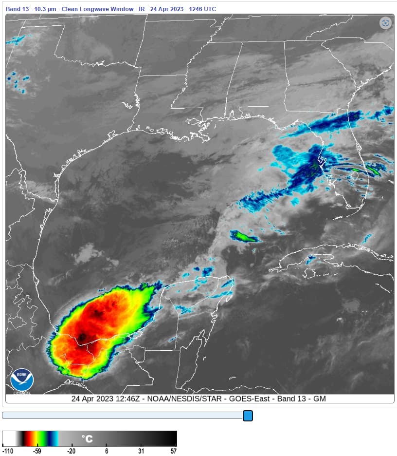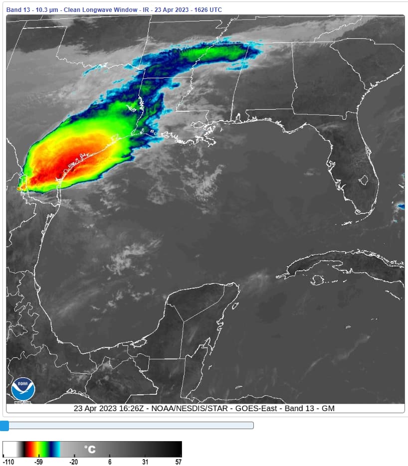 Images are stored on the NOAA website for ten days. The ones I posted are from the East Gulf of Mexico GeoColor and Band 13 channels under the “Download Images” links.