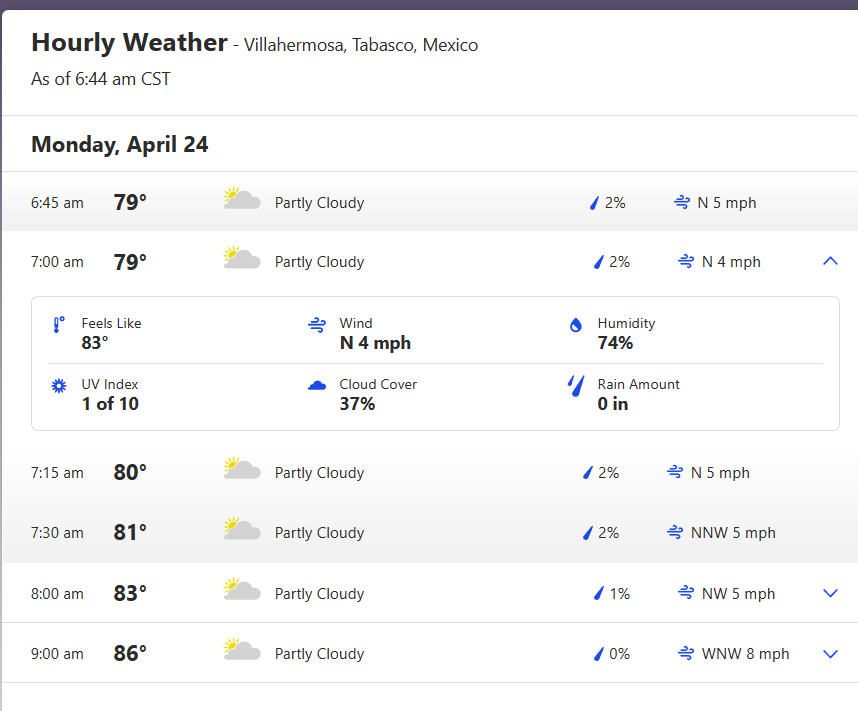 Similar to the first storm, the new one has a lot of high clouds and intense behavior that once again, does not seem to cause precipitation below. The weather in Villahermosa looks inviting, actually. Humph.