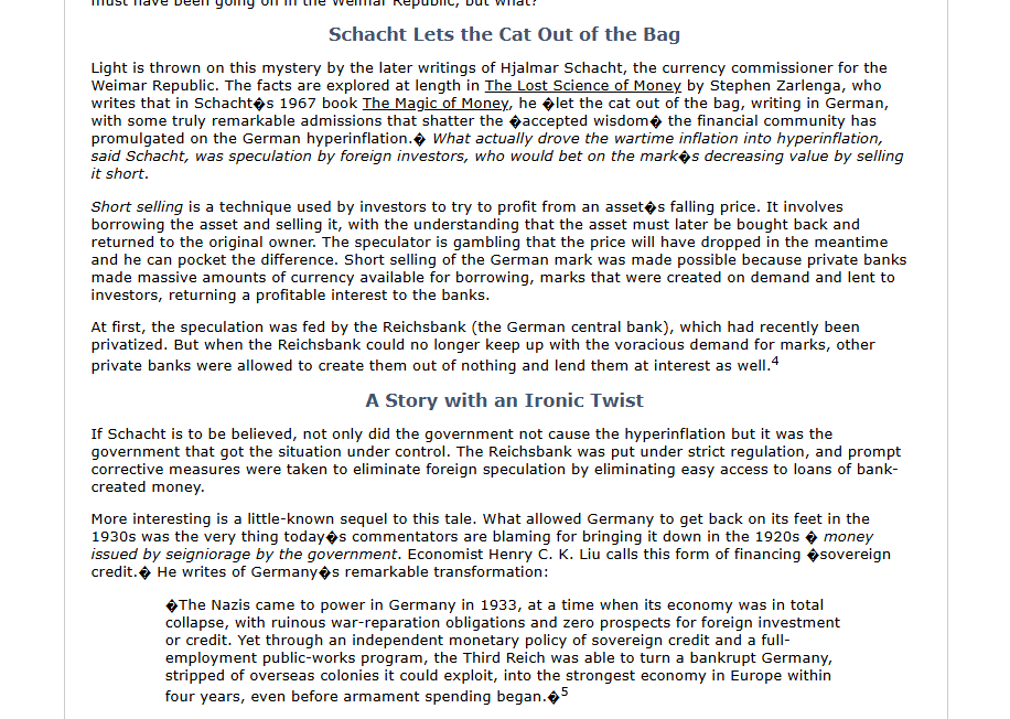 It wasn’t central bank money printing that caused the collapse of the Papiermark. It was western bankers shorting the currency. Zimbabwe? The IMF did it.