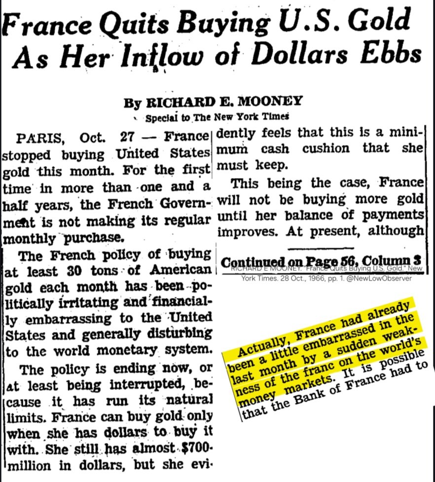 gold purchases are meant to be a show of strength but are instead proof of weakness. After France increased their holdings 40% due to US purchases their currency weakened. France was forced to issue gold indexed bonds that cost France 7 x by 1940