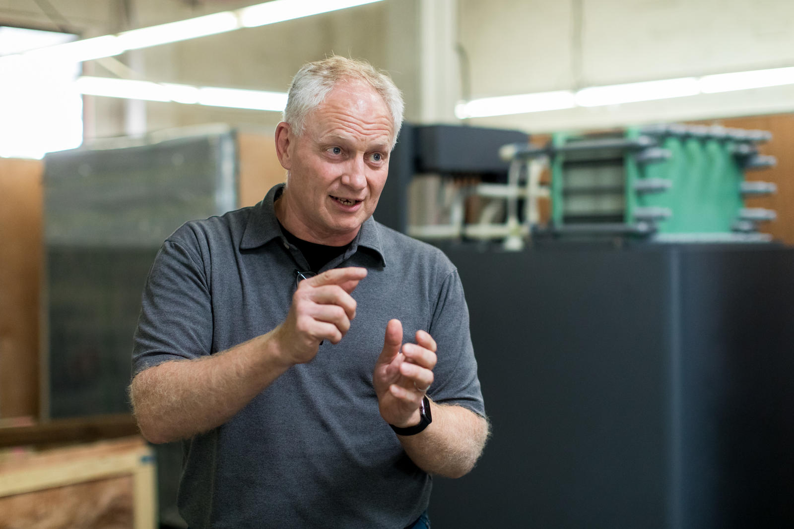 Rick Winter, a founder of the former UniEnergy Technologies, speaks with a reporter on August 10, 2022. (Dan DeLong/InvestigateWest)