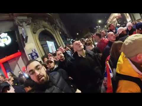 i saw a square gray panel on a 2.5 or so meter tall pole not far away from where this happened about an hour and a half before this happened (at which point I was around 200 meters away from the event). A friend was in this crowd and told me he thinks that if the whatever it is they unleashed lasted a few seconds more many would likely have a heart attack. He felt a strange sensation in his heart and had a headache the whole day after the event. dont forget this was done from the back of a completely peaceful group of people in a middle of 15 minutes of silence they performed to honor the 15 people who died from shabby newly redone railway station many times over budget.