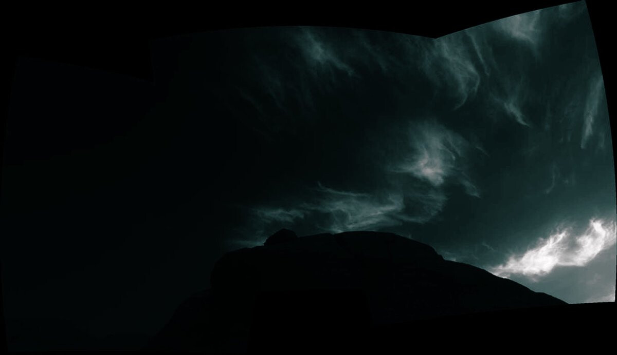 Using the navigation cameras on its mast, NASA’s Curiosity Mars rover took these images of clouds just after sunset.