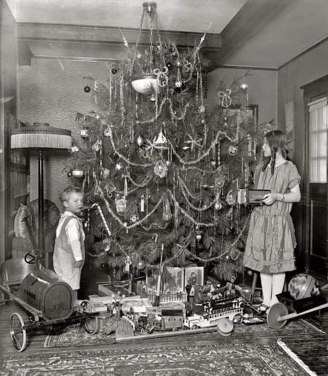 What Christmas looked like 100 years ago. Two children around a Christmas tree, Washington D.C. 1920.